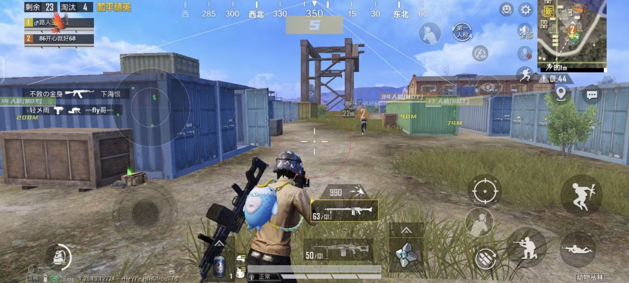 4.在PUBG游戏内开启辅助触控模式后,即可在游戏过程中使用绑定的操作来激活对应的手势。